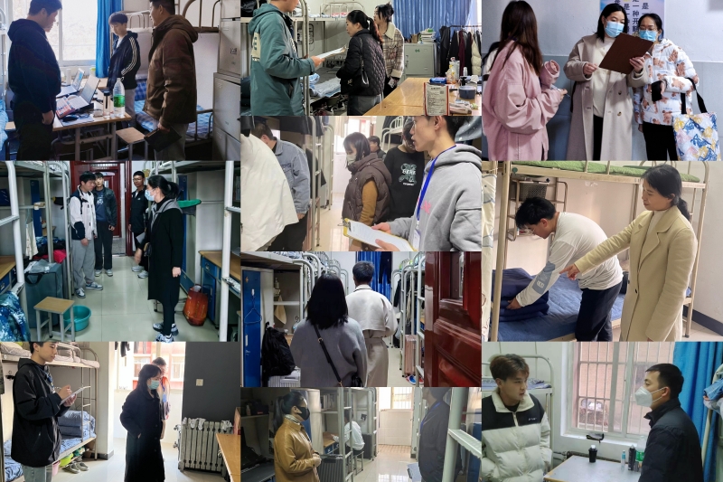 随后全体学工人员深入学生宿舍,认真查看安全卫生落实情况,重点对宿舍卫生、消防用电安全、传染病预防情况进行了全面检查,建立责任宿舍问题台账,并进行通报和提出整改意见和建议。