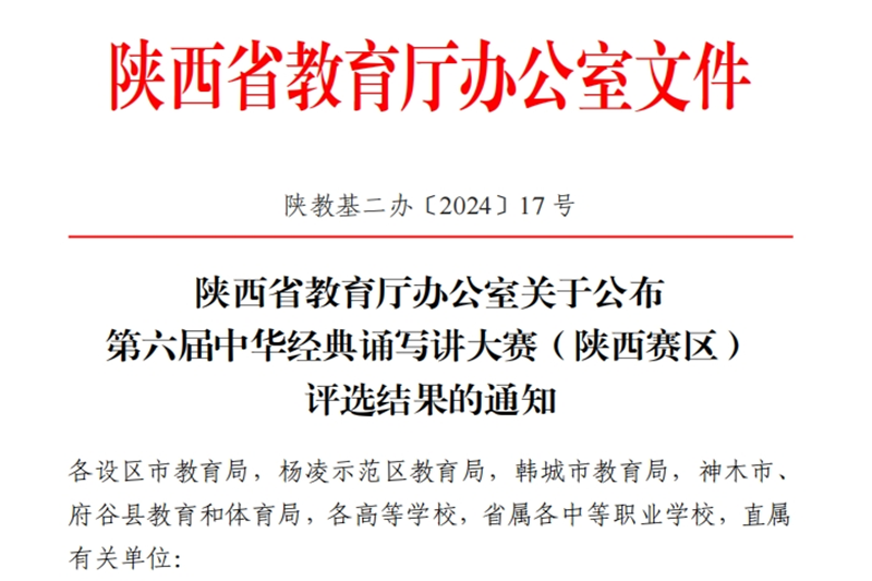 我校师生在第六届中华经典诵写讲大赛(陕西赛区)中获得佳绩