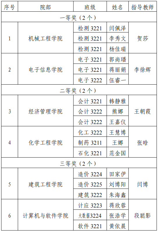 根据《中共陕西省委教育工委办公室关于开展第八届陕西高校“阳光护航”心理育人宣传季实践活动的通知》(陕教工生办〔2023〕3号)文件要求,深入推进我校心理健康宣传教育工作,增强全校学生心理健康意识,提高心理健康水平,创建和谐平安校园。学工部于2023年3月~4月在全校范围内开展了2023年心理健康科普知识竞赛活动。经过初赛与复赛激烈的角逐,共评出一等奖2名,二等奖2名,三等奖2名,优秀指导教师6名。具体获奖名单见下表: