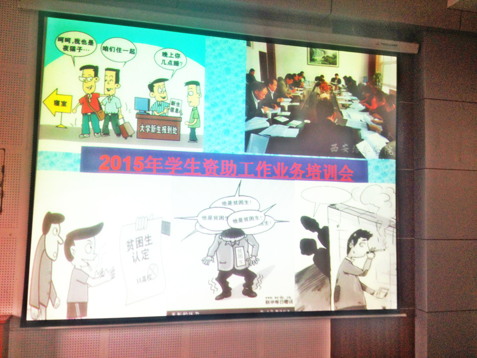 学院资助中心主任徐勃首先介绍了国家大学生资助政策体系构成,并就2015年陕西省教育厅资助工作会议精神组织辅导员进行了学习,要求全面落实国家资助政策,从“讲政治、讲大局、讲纪律”的高度不折不扣地执行政策,确保“应助尽助,不让一名学生因家庭困难而失学”,由保障型资助向发展型资助转变,由物质资助向精神资助变化。