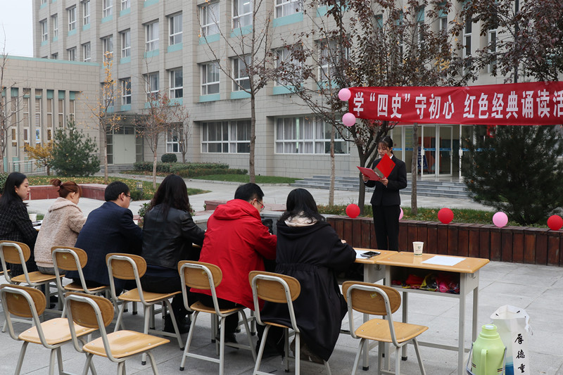 2020年11月11日下午16:30,“学‘四史’守初心”红色经典诵读活动在北区教四楼前小花园中隆重举行。党委必威app安卓版无弹窗部副部长、团委书记张钊老师,党委必威app安卓版无弹窗部副部长王牛俊老师,党委必威app安卓版无弹窗部副部长陈正权老师,必威app安卓版无弹窗党委学生党支部书记刘伟老师,必威app安卓版无弹窗党委学生党支部组织委员李月娇老师以及学生党员参加了此次活动。