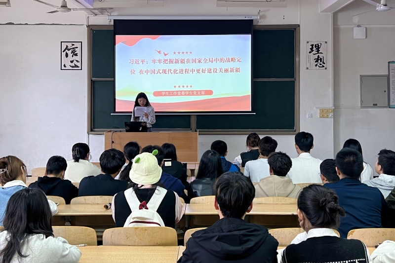 其次,学生干部陈思雨带领大家学习了习近平总书记在听取新疆维吾尔族自治的生产建设兵团工作的汇报并观看了视频。党中央高度重视新疆工作,作出一系列重大决策部署,推动新疆改革发展、民族团结、社会进步等历史性成就。其中背后的每一项成就和每一步跨越,根本在于有习近平总书记掌舵领航,在于习近平新时代中国特色社会主义思想的新时达党的方针政策引领。作为学校学生干部的中坚力量,坚定不移听党话、跟党走,深刻领悟“两个确立”的决定性意义,进一步增强“四个意识”、坚定“四个自信”、做到“两个维护”,增强责任感和使命感,以青春之力砥砺推进中国式现代化建设。