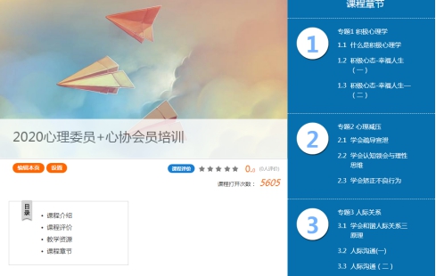作为心理健康教育及危机干预五级防护网络的重要一环,我校各班级心理委员在疫情防控期间发挥了积极作用。为进一步指导班级心理委员做好工作,明确工作职责,提高业务水平,建设一支具有较高水平的朋辈心理辅导队伍,进一步加强我校大学生心理健康教育工作,由我校学工部大学生心理健康教育中心主办的2020年心理委员线上培训班于5月30日至6月7日在超星学习通上开讲。本次培训共有三个专题:积极心理学、心理减压和人际关系,共计9个课时。