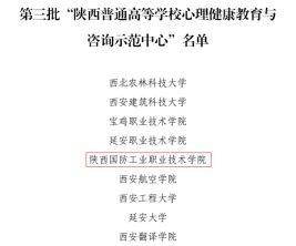 11月25日,陕西省委教育工委发布《中共陕西省委教育工委关于公布陕西高校心理健康教育与咨询中心标准化建设项目(2020年度)和第三批省级示范心理中心创建结果的通知》(陕教工〔2020〕221号),我校被评为第三批“陕西普通高等学校心理健康教育与咨询示范中心”。本次全省示范中心授牌的仅9所。
