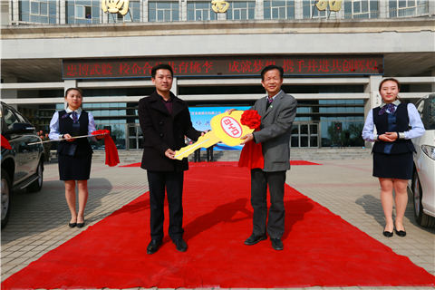 3月30日上午,比亚迪股份有限公司汽车捐赠仪式在我校北校区隆重举行。我校党委书记张文斌、院长张权民、党委副书记王明哲、副院长刘敏涵,比亚迪股份有限公司西安地区人力资源总监易珑、西安地区招聘经理晁蓉、西安地区招聘经理解江辉出席了本次活动。党委书记张文斌从易珑总监手中接过捐赠车辆“车钥匙”。党政办、宣传部、招生就业处、实践教学处、汽车工程学院等部门的相关人员和学生代表参加了本次活动。副院长刘敏涵主持捐赠仪式。