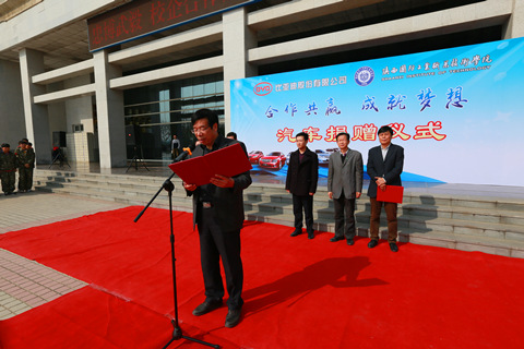仪式上,张权民院长代表学校对比亚迪股份有限公司表示了诚挚的感谢。他说,近几年来,学校有几百余名学生和老师到比亚迪去实习、就业和进行教学科研的交流,这些行为都加深了校企双方之间的友谊。本次捐赠行为更加充分体现了比亚迪股份有限公司作为民族优秀企业的社会责任感,将激励全校师生员工把教学、科研、学习做的越来越好。学校也将充分利用捐赠的设备,培养汽车产业发展的高素质技术、技能人才。同时,期望与比亚迪公司开展进一步的深化合作,促进事业的共同发展。