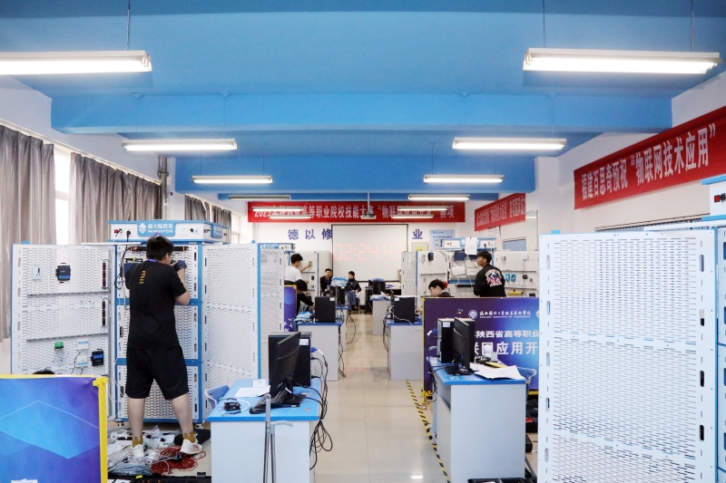 5月6日举行的“物联网应用开发”赛项由我校人工智能学院承办,共有来自陕西省16所高职院校的29支参赛队参加了比赛。竞赛为学生团体赛,每支参赛队由2名学生选手组成。赛项结合交通、市政、能源等领域智能化应用,明确行业实际需求,融合运用5G、人工智能等现代信息技术,围绕问题开发创意,创新解决方案,完成实际物联网工程项目的设计与实施,赛项分为物联网方案设计与升级改造和物联网应用开发与调试两个模块,检验选手专业知识、实践技能和开发技能,考察了选手对于物联网技术应用的基础知识、综合技能和职业素养。