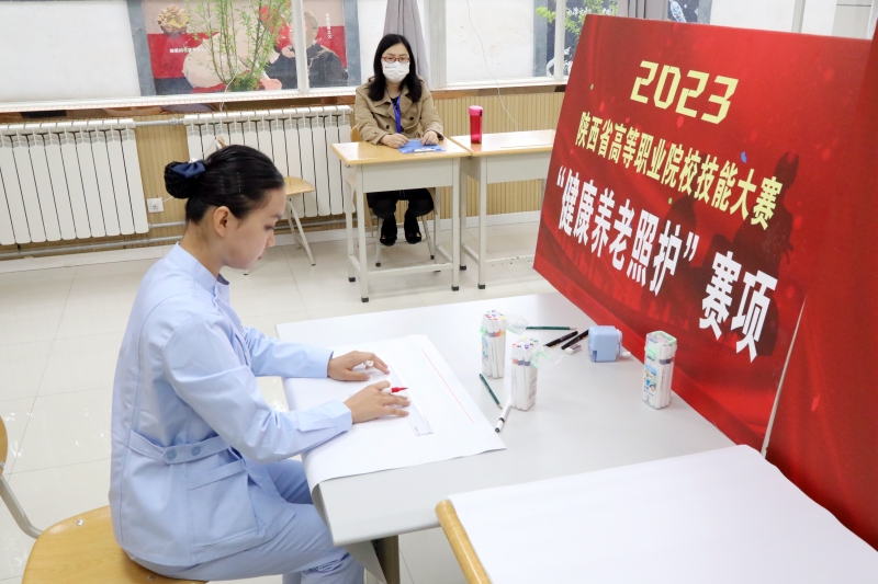 5月6日举行的“健康养老照护”赛项由我校经济管理学院承办,共有来自陕西省11所高职院校的29支参赛队参加了比赛。竞赛为学生个人赛,每支参赛队由1名学生选手组成。赛项是基于以人为本的理念,参照养老护理员、健康照护师等相关职业技能标准,结合我国养老产业发展现状,要求选手在居家、社区和医养结合机构三个模块,通过评估、计划、实施和反思等程序,运用新型智慧康养设备和照护措施,为老年人提供专业、规范的照护服务,使其照护需求得到满足,促进其身心健康和疾病康复,提高生命质量。大赛重点考查参赛选手的知识应用能力、临床思维能力、操作执行能力、分析问题和解决问题的能力及人文关怀能力。