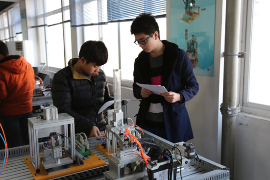 12月16日下午,我校机电学院举办自动化生产线安装与调试大赛决赛。本次大赛由实践教学管理处主办,机电学院承办,共71名学生报名参加比赛,经过预赛最终有14名选手进入决赛。 通过此项目竞赛,检验参赛选手的自动化系统的设计、安装、编程、调试、运行、维护等工程实施能力以及质量、效率和安全意识,提高学生学习的积极性,促进我校工学结合人才培养模式改革与创新,培养可持续发展、满足企业需求的自动化技术类高端技能型人才。