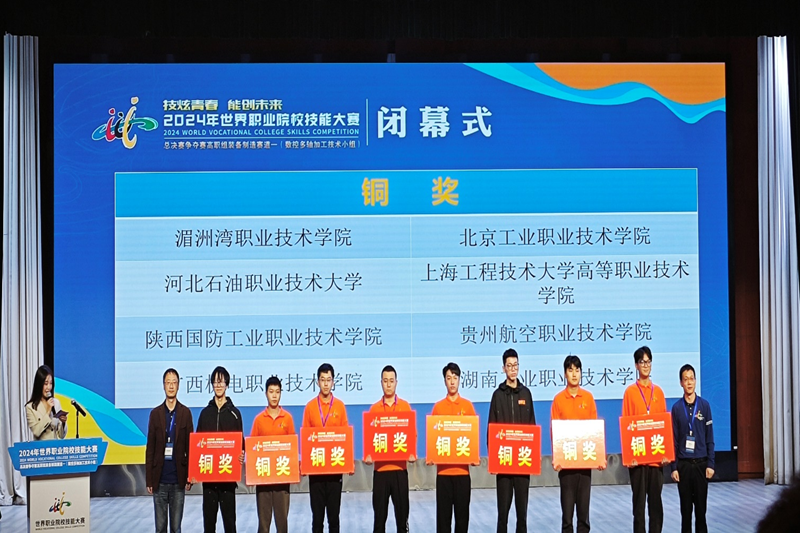 2024年世界职业院校技能大赛装备制造类“数控多轴加工技术”赛项争夺赛于近日在四川工程职业技术大学圆满落下帷幕。本次大赛吸引了来自全国32个省市自治区的59支队伍,共计236名选手参赛。经过10月28日至29日两天紧张激烈的比拼后,我校参赛队(吴奇鹏、李建新、陈洋洋)获得了团体“铜奖”。