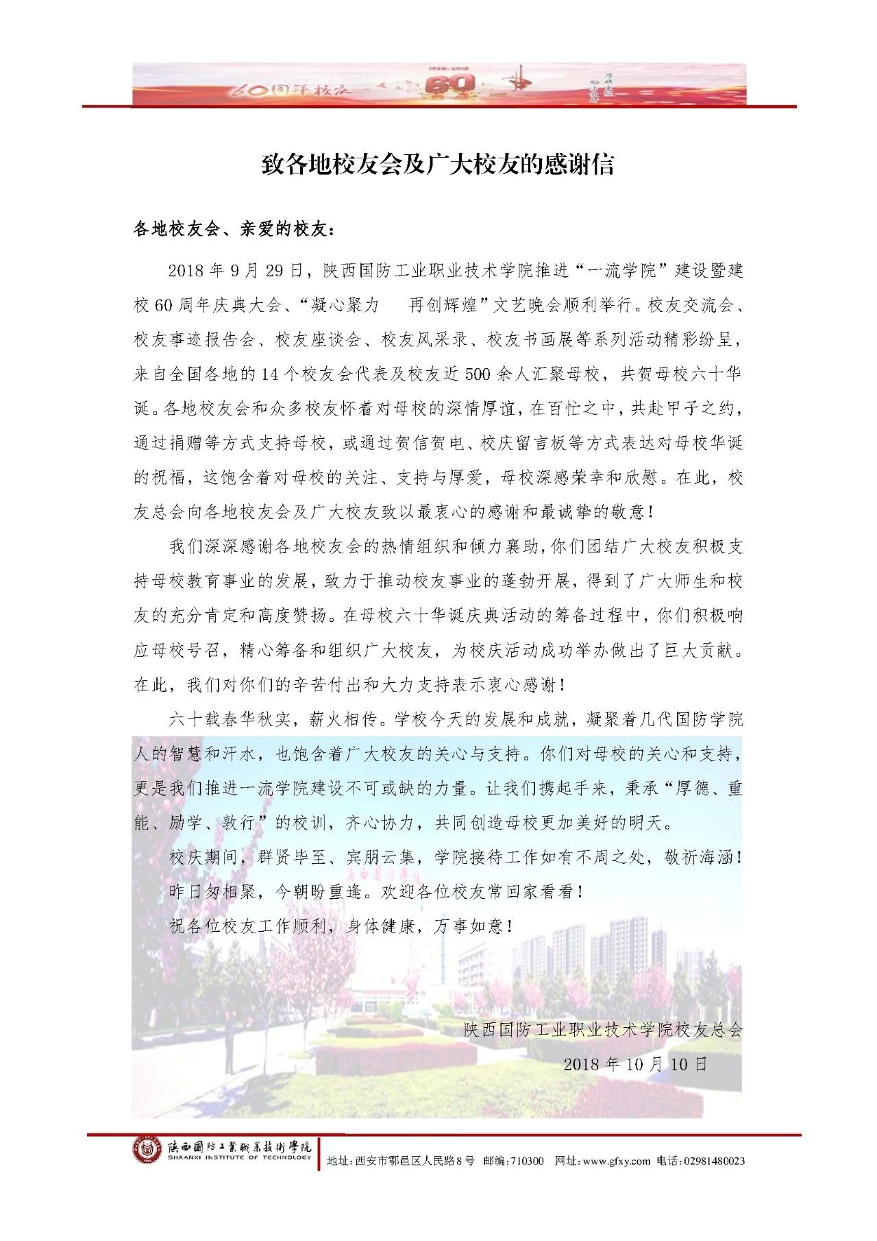我们深深感谢各地校友会的热情组织和倾力襄助,你们团结广大校友积极支持母校教育事业的发展,致力于推动校友事业的蓬勃开展,得到了广大师生和校友的充分肯定和高度赞扬。在母校六十华诞庆典活动的筹备过程中,你们积极响应母校号召,精心筹备和组织广大校友,为校庆活动成功举办做出了巨大贡献。在此,我们对你们的辛苦付出和大力支持表示衷心感谢!