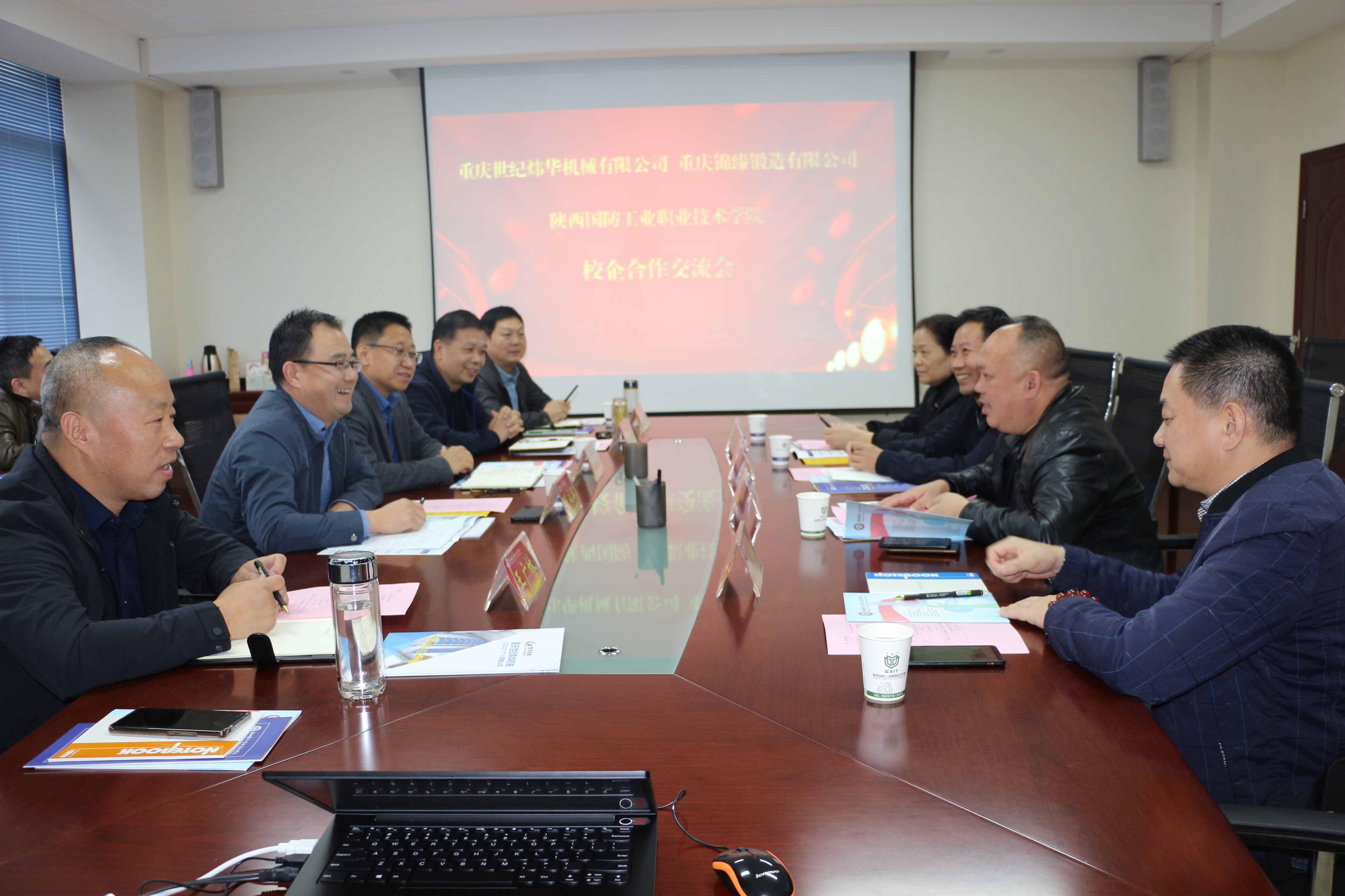 重庆市世纪炜华机械有限公司公司总经理张志勇(我校86级校友)(工02班),重庆锦瑧锻造有限公司总经理黄瑞(我校82级校友)(机械321班),智能制造学院、机械工程学院、校企合作处、校友总会办公室主要负责人参加了座谈会。