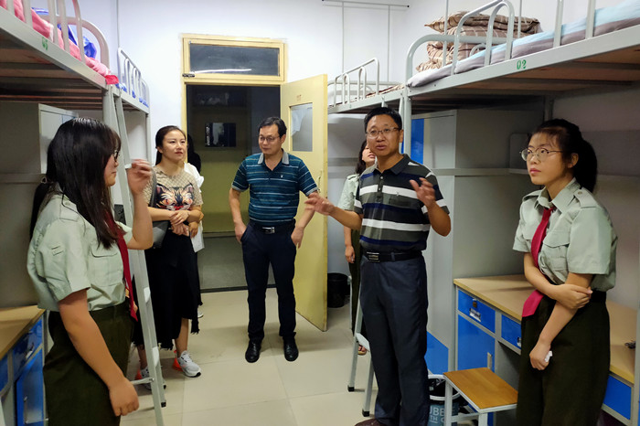 9月3日晚,学院副院长孟繁增到学生公寓走访慰问艺术学院2019级新生。走访过程中,孟繁增副院长与新生亲切交谈,详细询问新生进校后的感受以及住宿、生活等情况,对同学们关心的问题给予答复。他对新生们提出殷切期望,希望同学们尽快转变角色,熟悉校园环境,建立和谐友好的人际关系,以积极的心态和良好的面貌适应大学校园生活,并就“如何合理的规划大学生活”与学生进行了探讨。艺术学院院长惠晓钟、副书记管阳陪同。