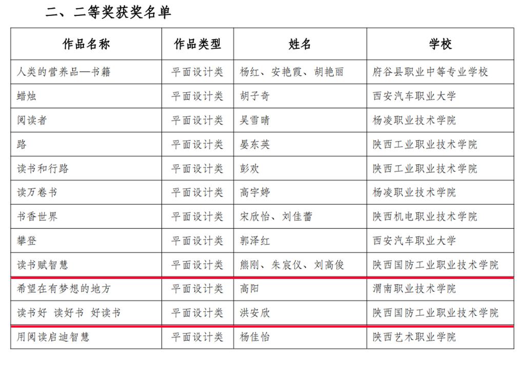 由陕西省职业教育高等学校图书情报工作委员会承办的2022年陕西省职业院校阅读文化创意设计展示活动比赛获奖名单揭晓。艺术与设计学院王海丽、文茂两位教师指导的作品获一等奖4项、二等奖2项、三等奖7项。同时我校也荣获“优秀组织奖”。