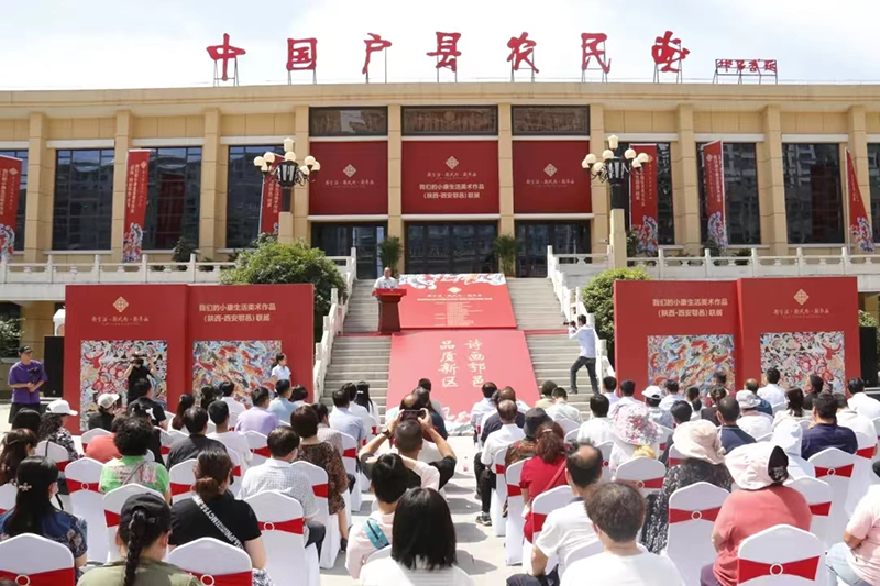 2023年6月9日上午,“新生活·新风尚·新年画”——我们的小康生活美术作品(陕西·西安鄠邑)联展活动在陕西省西安市鄠邑区农民画展览馆隆重举行。我校艺术与设计学院师生受邀参加活动。