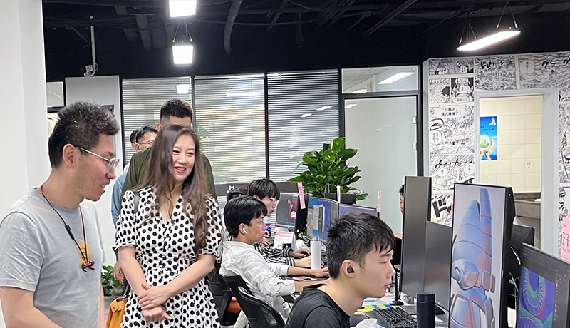 玛雅动画制作有限公司总经理胡国军对我院一行人的到访表示欢迎,并详细介绍了公司概况、未来发展规划及业务前景。项目经理樊华对公司所做的游戏、番剧、原画、影视制作、栏目包装、视频等项目做了具体展示说明。