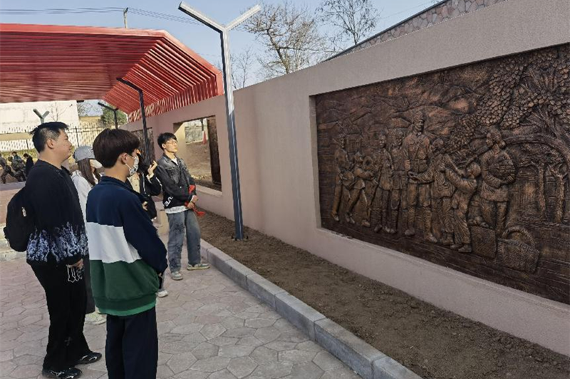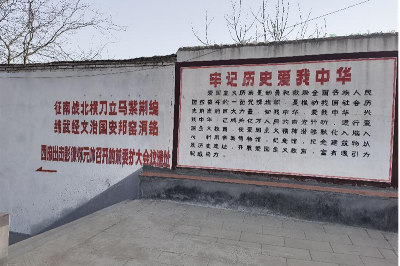 彭德怀“西府出击”战役指挥部旧址位于宝鸡市凤翔区陈村镇紫荆村。全体师生从主入口进入,一路沿着下沉广场、景观坡地、参观学习了英雄长廊、彭德怀宣传栏、战役浮雕景观和宣讲台,学习了关于彭德怀在凤翔召开西府战役前委扩大会议和当地的抗战故事。面对纪念西府战役红旗招展的红色文化广场,巍然屹立的镌刻着“人民英雄永垂千秋”的纪念碑,大家仿佛被带入到解放前夕的红色革命岁月,纷纷被革命先辈们顽强不屈、艰苦奋斗的精神所感动。