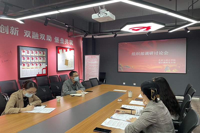 2023年5月25日下午15:00在19-509党员之家,学校党委组织部副部长张鹏一行二人深入艺术与设计学院设计教师党支部开展调研座谈,设计教师党支部全体委员参加了本次调研活动。