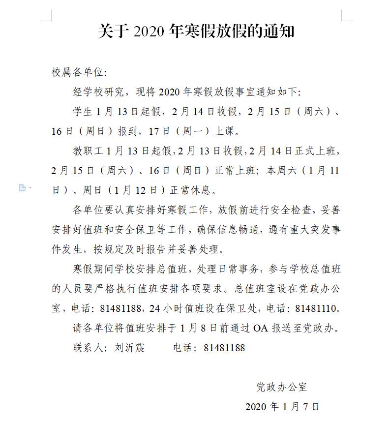 上一条:关于2020年春季学期学生返校有关事项的通知