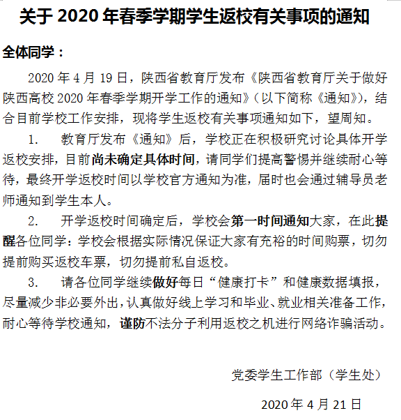 电话:029-81481188(院办) 81481111(招生) 地址:西安市鄠邑区人民路8号 邮编:710300