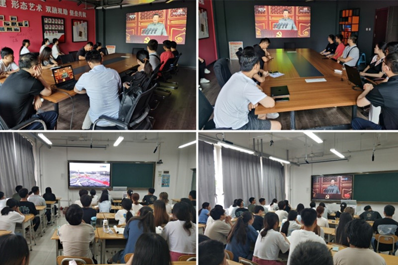 2021年7月1日上午8点整,庆祝中国共产党成立100周年大会在首都北京召开。艺术与设计学院党总支组织师生党员在19-509党员之家和4-103教室满怀激情、齐聚一堂,集中观看大会直播实况,共庆中国共产党百年华诞。观看过程中,大家热情澎湃,不时跟着直播现场掌声互动,大家表示将更加坚定跟党走的决心,始终坚守中国共产党的初心,牢记中国共产党的使命,在党的带领下不负时代、不负韶华,在教学本职岗位上,奉献青春和热血,启航美丽学院再出发新征程,向着中国第二个百年奋斗目标迈进。
