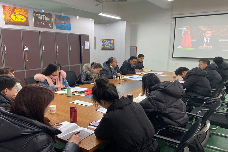 首先,常继红同志传达了学校《关于2021年1月份教职工政治理论学习安排的通知》,接着全体教职工集体观看了《国家主席习近平发表二〇二一年新年贺词》、《习近平主持召开中央全面深化改革委员会第十七次会议强调坚定改革信心汇聚改革合力推动新发展阶段改革取得更大突破》视频。然后,常继红同志带领大家学习了《习近平谈治国理政》第三卷之《继续推动全党不忘初心、牢记使命》、《习近平总书记教育重要论述讲义》第一、二讲内容,并强调加强政治理论学习要常态化、制度化,用理论武装自己,不断提高思想政治素质和理论水平,更好的为学校建设发展做出贡献。