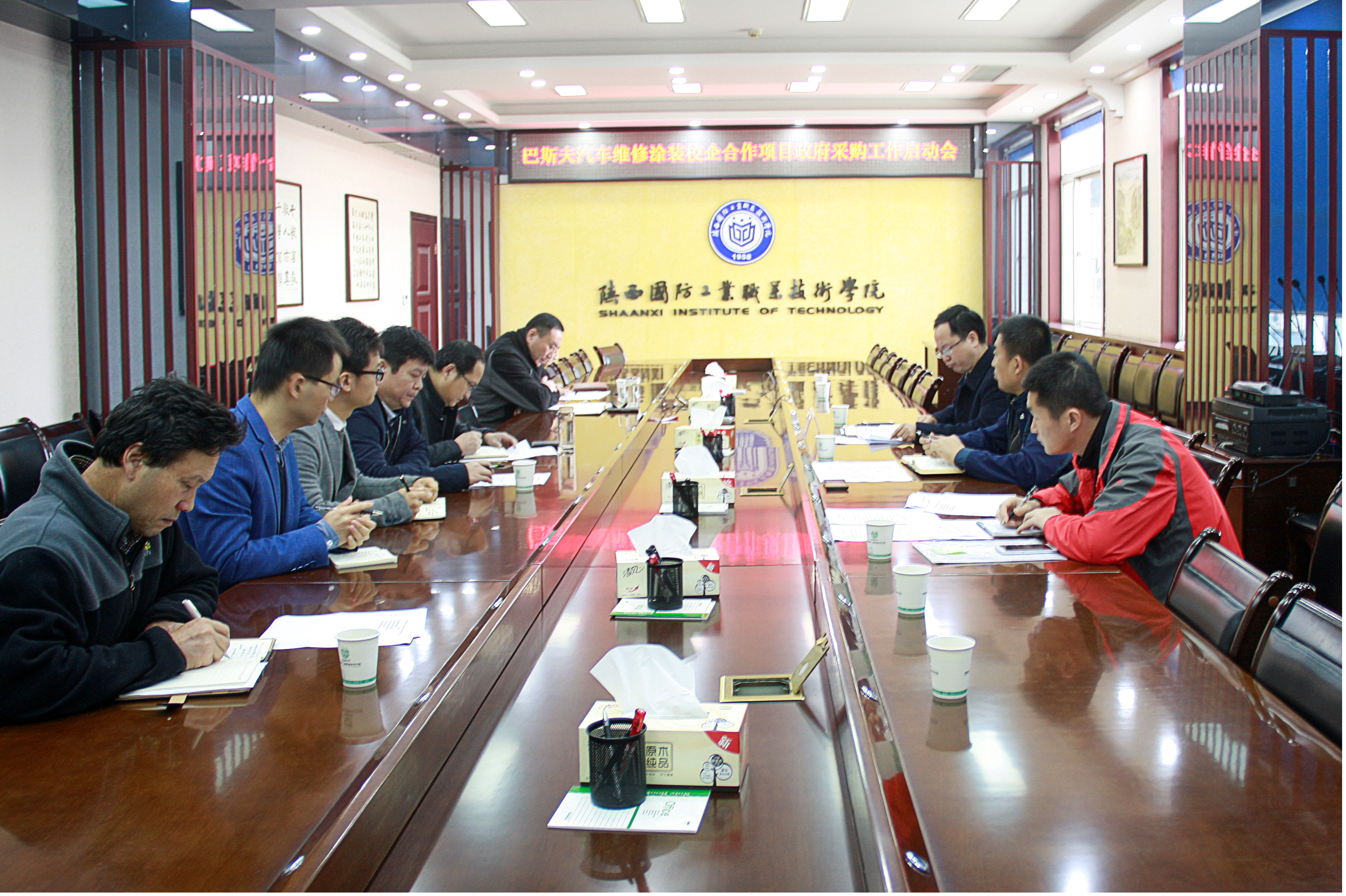 首先由资产管理处处长白福民介绍会议主题及议程。并根据《中华人民共和国政府采购法》、《中华人民共和国政府采购法实施条例》、《政府采购货物和服务招标投标管理办法》及《陕西省人民政府办公厅关于印发省2017~2018年度政府集中采购目录及采购限额标准的通知》(陕政办函[2016]296号)等有关法律法规规定,宣布成立“汽车学院巴斯夫汽车维修涂装校企合作项目”政府采购工作领导小组。小组组长由杨聪院长担任,成员有姚文超、马智国、解辉、白福民、孟繁增、张鑫等同志。采购工作领导小组全面负责本项目的政府采购工作。