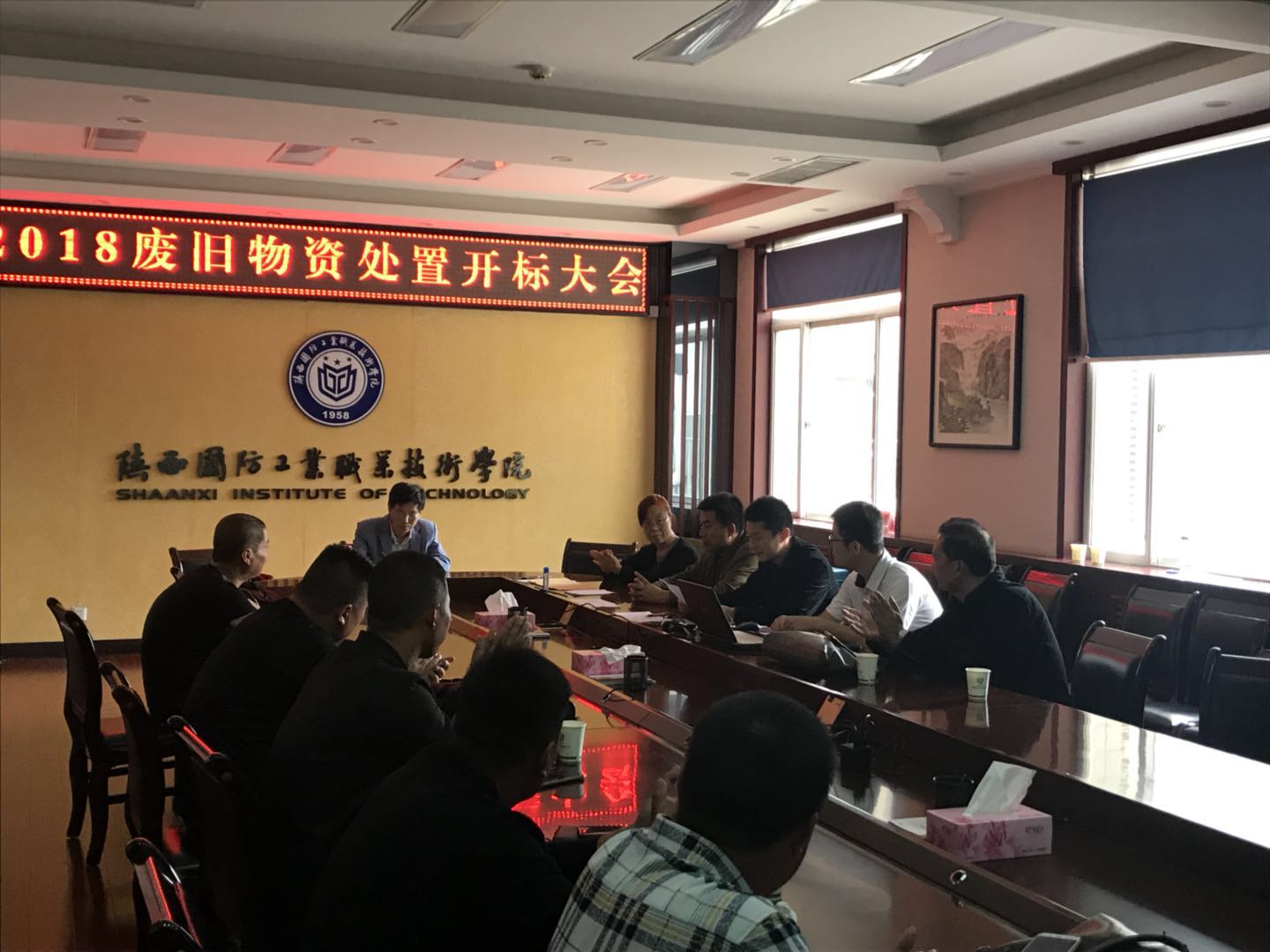 会议由资产管理处办公室主任赵刚主持。参会人员有我院本项目招标处置小组成员及9家投标单位代表。