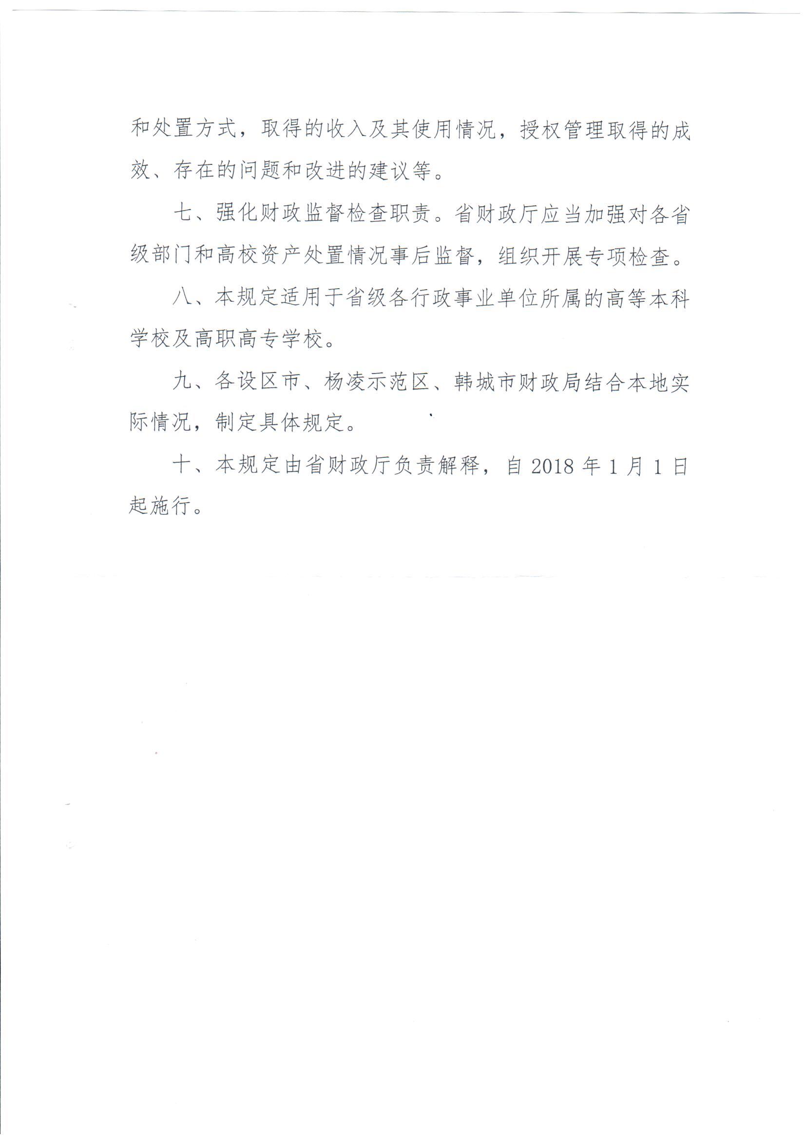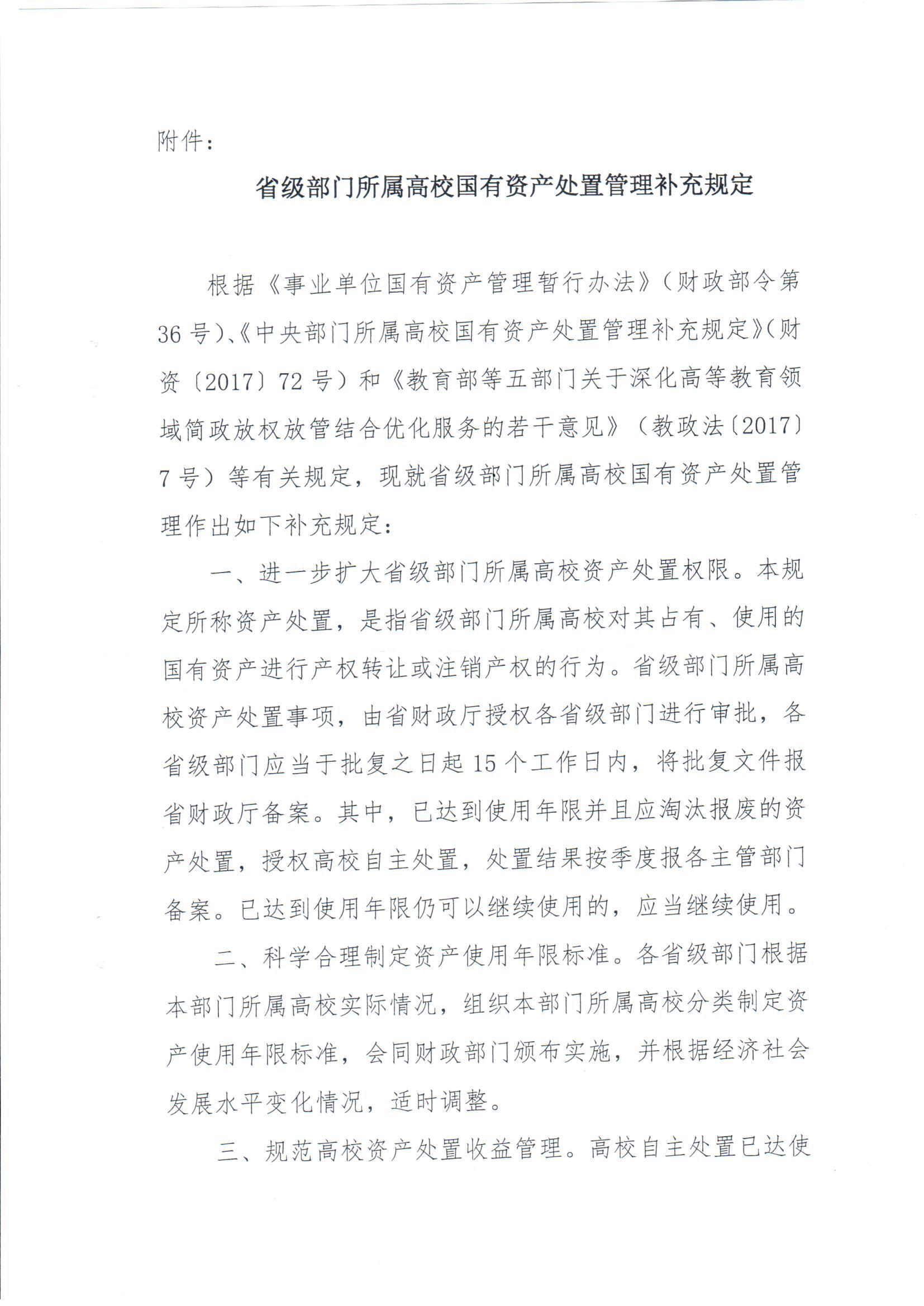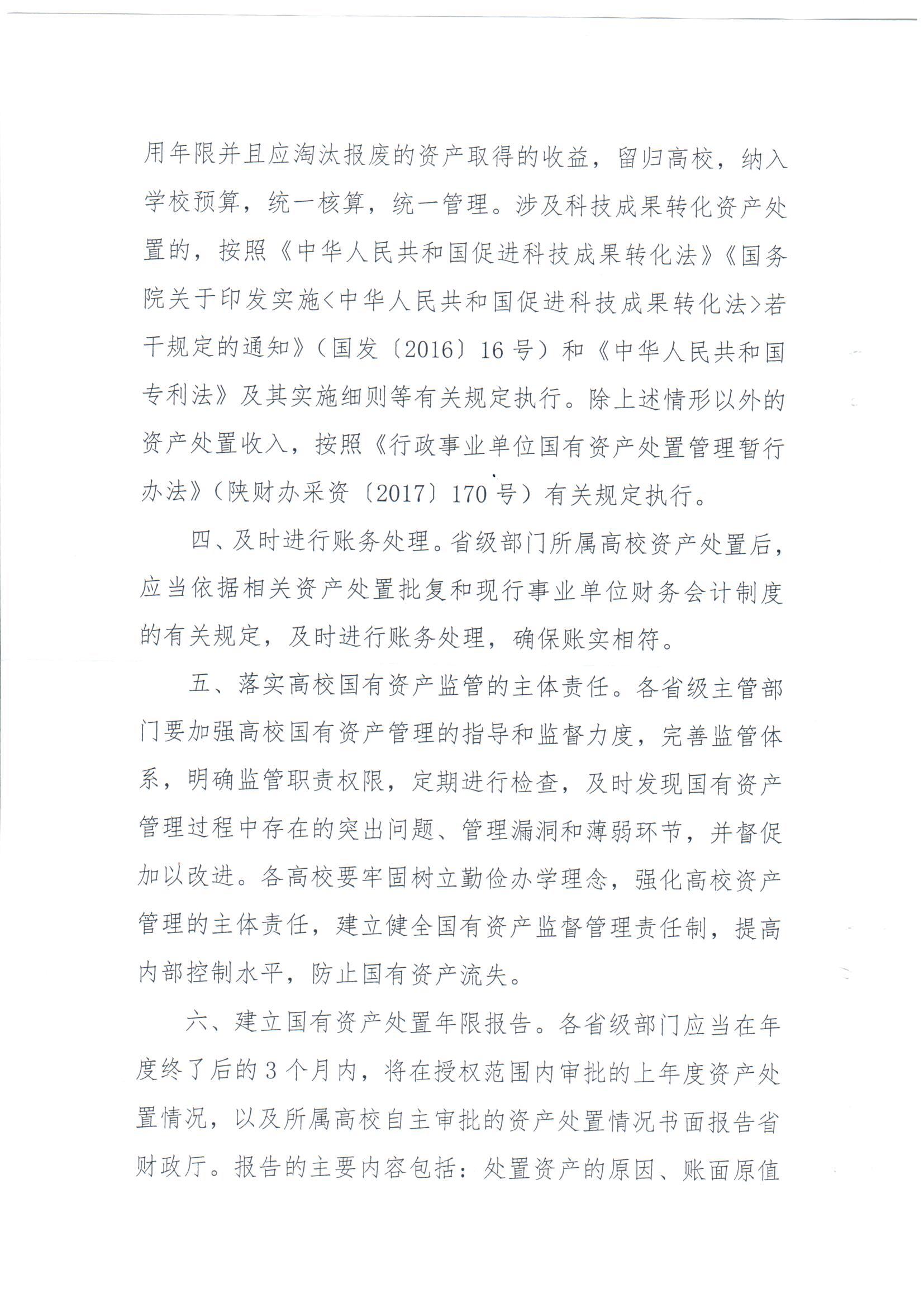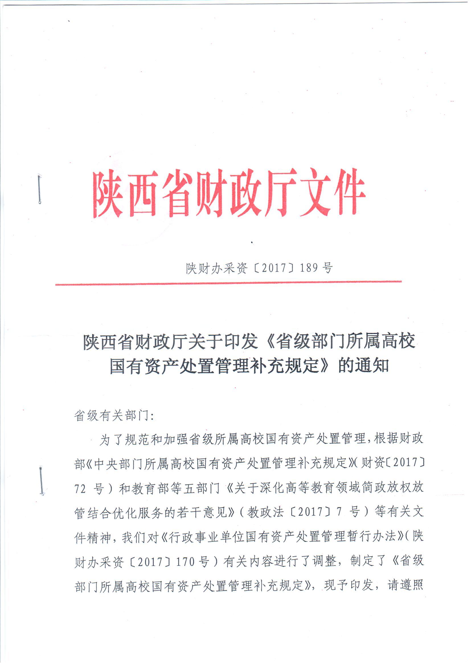 陕西省财政厅关于印发《省级部门所属高校国有资产处置管理补充规定》的通知(陕财办采资2017年189号)