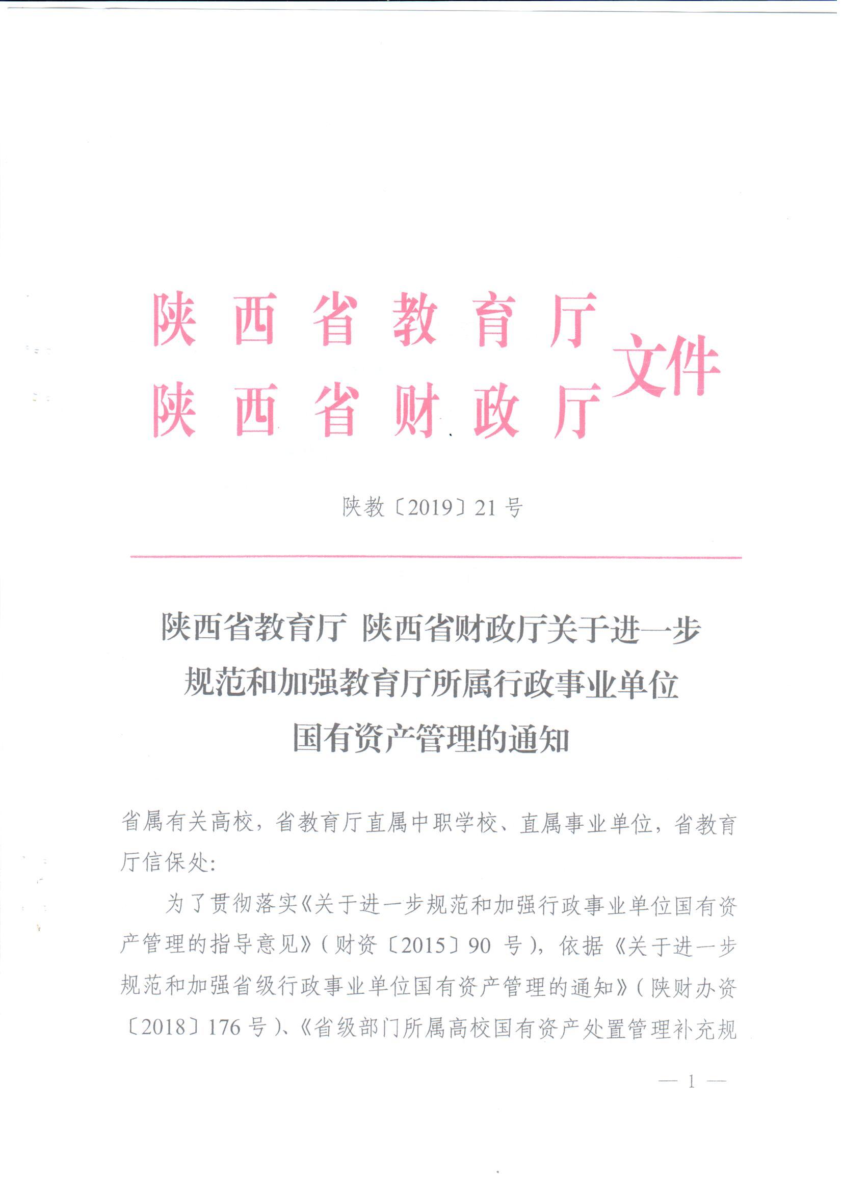 陕西省教育厅陕西省财政厅关于进一步规范和加强教育厅所属行政事业单位国有资产管理的通知