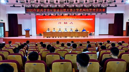 2020年9月17日,陕西省青年职业技能大赛“计算机网络管理员”决赛开幕式在汉中职业技术学院举行。学院党委副书记、院长张国海,党委副书记袁力,汉中市总工会党组成员、副主席赵新平,汉中市人力资源与社会保障局调研员张复来,共青团陕西省委青年发展部一级主任科员李东,共青团汉中市委书记刘洋出席开幕式,各参赛学校、单位的负责人,参赛选手及领队,大赛组委会成员、裁判和工作人员等600余人参加开幕式。开幕式由学院党委委员、副院长刘义成主持。