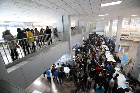 为不断提升我院应届毕业生就业层次,实现优质就业,11月9日上午,betway必威中文正版2014届毕业生校园招聘会在学院北校区图书馆举行,吸引了航天、航空、兵器、船舶、核工业以及机械、电子、能源、化工等80家用人单位的参会,招聘岗位涵盖了机械、电气、数控、模具、汽车、焊接、材料、计算机、会计、物流、市场营销等专业,绝大多数岗位需求与我院开设专业相一致,为毕业生的职业选择提供了很大的空间。