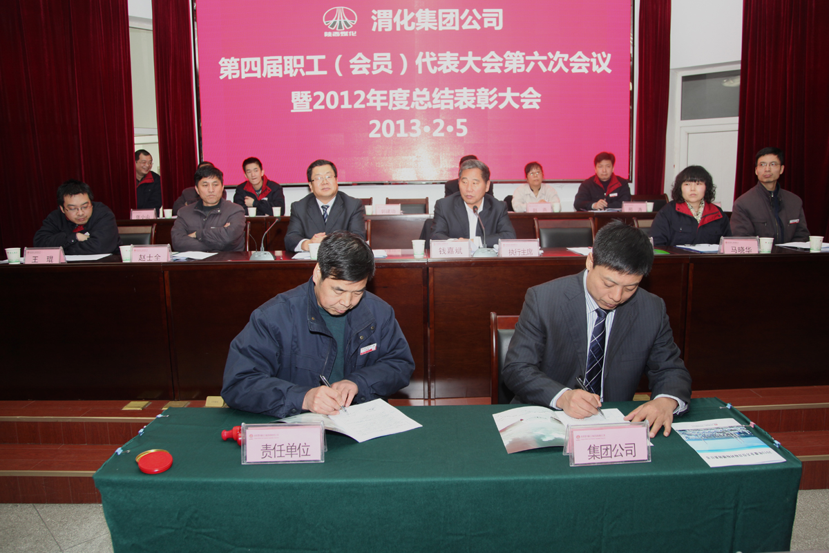 2月5日,公司在渭河娱乐中心召开了四届六次职代会暨2012年度总结表彰大会。董事长、党委书记钱嘉斌,总经理郭建功,党委副书记、纪委书记、工会主席刘智,常务副总经理尹润生,副总经理冯晓宏、张小军等公司领导出席了会议,来自28个基层分会职工、会员代表及列席代表近150人参加了大会。