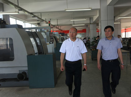 图1 刘少阳副书记陪同孔鹏副总经理(右一)一行参观学院数控加工中心