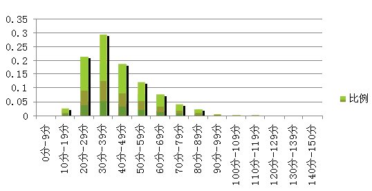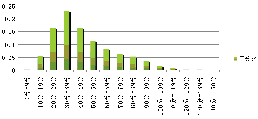 根据学生入学成绩分析生源特点:新生的文化课基础比较薄弱,尤其是数学和英语。2012级新生高考数学成绩各分数段人数分布情况见图5,高考数学成绩各分数段人数分布情况见图6所示。