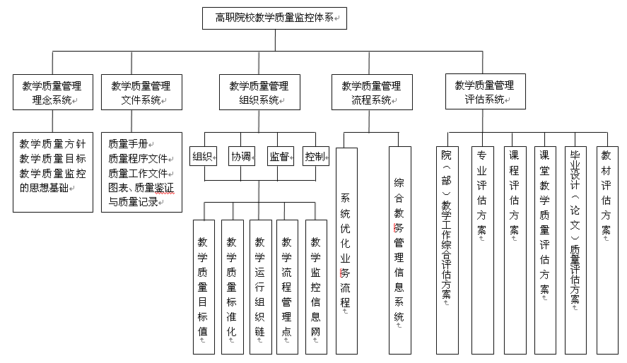 学院本着以人为本,以服务为宗旨的理念,建立了“全程监控、动态反馈、持续改进、循环提高”的人才培养质量监控保障体系。该体系包括教学质量管理理念系统、教学质量管理的文件系统、教学质量管理组织系统、教学质量管理业务流程系统、教学质量评估系统五个相互关联的子系统。学院建立目标监控机制,按照服务一切学生的要求,采用逐级分解的方式,确定全院各级领导、教师、辅导员、教辅人员的质量目标,形成了全面质量管理的目标体系;学院建立全过程质量监控机制,对招生工作、入学教育、人才培养、顶岗实习、就业单位、毕业生跟踪等每个与学生学习、生活、工作有关的环节进行监控;学院本着持续改进和循环提高的原则,建立动态反馈跟踪机制,以职能部门、教师、学生、企业代表等为主体,针对在人才培养过程中出现的问题,形成每周通报,教学质量不断提高;学院通过毕业生跟踪、用人单位意见反馈、招生宣传、学生家长走访、企业调研等方式,接受来自学生、家长、用人单位、合作伙伴、主管部门和社会各界的评价监督;学院健全了教学质量管理制度、新专业建设评估制度、课程建设评估制度等,完善了督导制度、毕业生跟踪调查制度等,建立全员绩效考核激励机制。图9为学院教学质量监控体系。