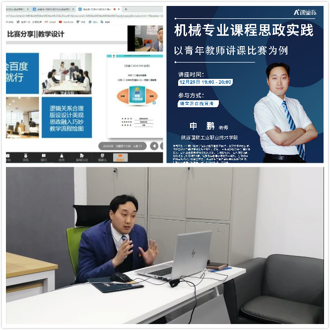 近期,北京爱课互动科技有限公司(A+课堂派)特邀智能制造学院青年教师申鹏,面向全国高校教师进行课程思政公益系列讲座线上授课。
