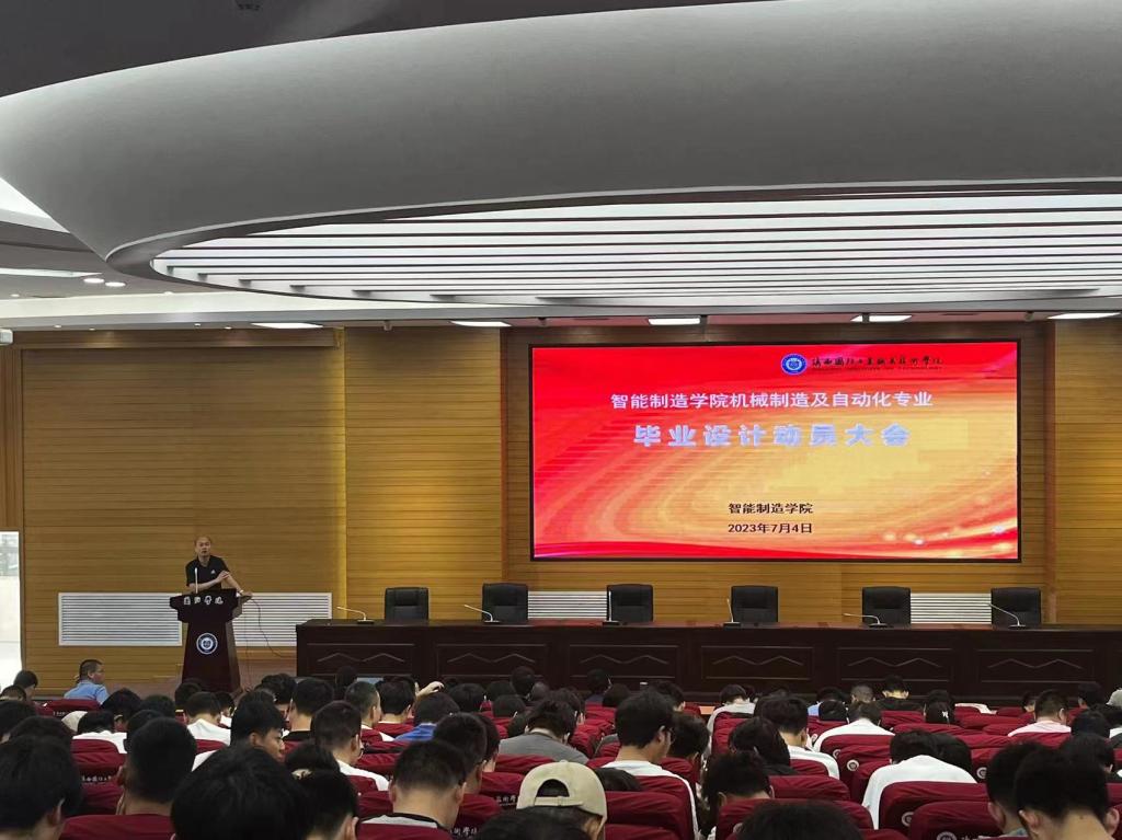 为确保2024届毕业生保质保量完成毕业设计要求,智能制造学院提前谋划、及时部署,7月4日上午,机制教研室在教学楼报告厅组织召开了2024届机械制造及自动化专业毕业设计动员会。智能制造学院党总支副书记兼副院长沈博、全体指导教师、2024届机械制造及自动化专业全体学生参加,会议由机制教研室主任李会荣主持。