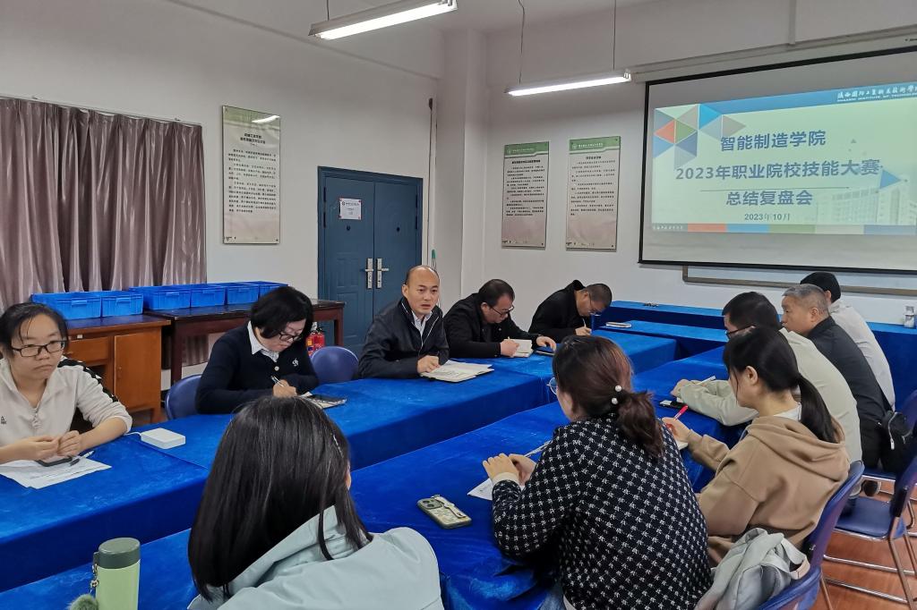 10月18日下午,智能制造学院在致远楼精密测量实训室举行2023年职业院校技能大赛总结复盘会。智能制造学院副书记兼副院长沈博,国省赛指导教师和各教研室主任参加。会议由教学科长王新海主持。