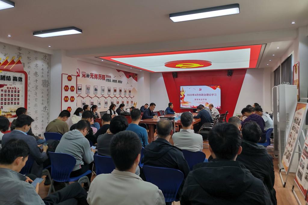 为深入贯彻落实习近平总书记关于加强党的政治建设的重要指示精神,进一步加强全体教职工的政治理论学习素养,4月27日下午,智能制造学院在党员之家组织召开了四月份政治理论学习会议。全体教职工参加学习,智能制造学院党总支书记白福民主持学习活动。