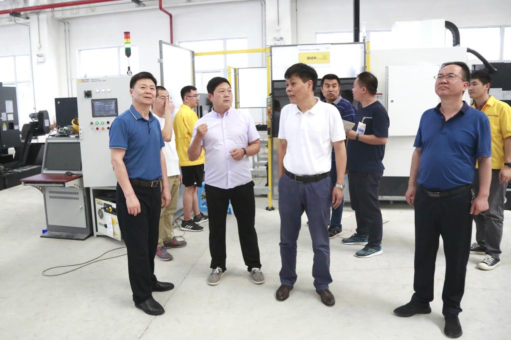 在智能制造实训中心,张卫平、刘敏涵等校领导详细询问了实训中心项目进展情况、教师顶岗实践情况,认真检查了设备安装调试相关工作,要求企业工作人员和实践教师做好防疫防暑、确保人身安全。