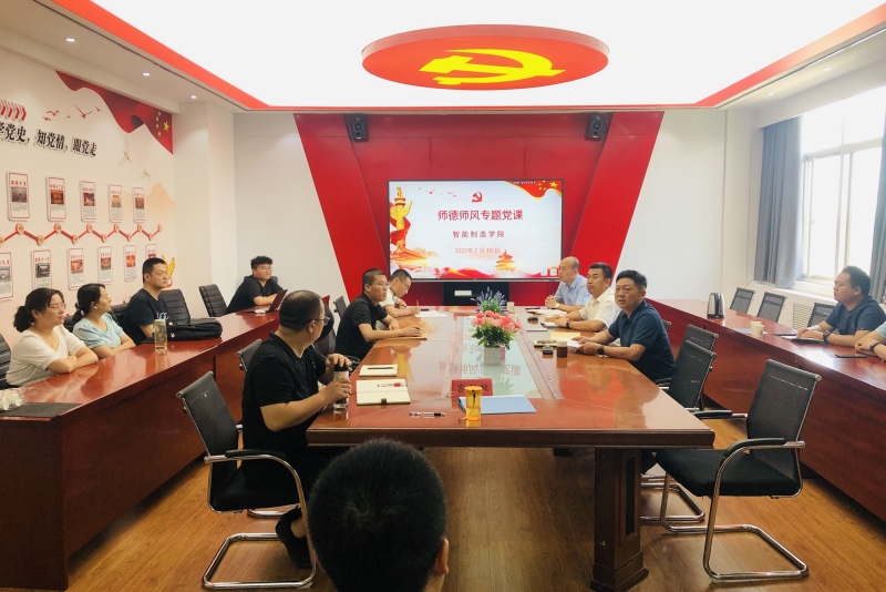 为深入学习贯彻习近平新时代中国特色社会主义思想,落实习近平总书记关于教育的重要论述和指示批示精神,坚持师德师风第一标准,持续加强新形势下师德师风建设,筑牢广大教师为党育人、为国育才初心使命,2023年7月10日上午,智能制造学院在致远楼305室(党员之家)开展师德师风专题讲党课活动,分院所有教职工参加了学习,本次党课由智能制造学院李俊涛院长讲授。