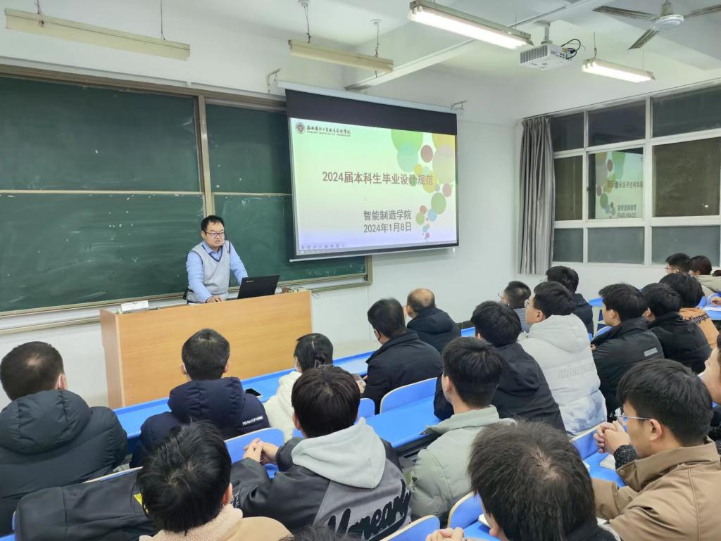 为确保本科毕业设计工作高质量开展,1月8日智能制造学院在教3-106召开2024届本科毕业设计动员会,智能制造学院党总支副书记兼副院长沈博出席会议,全体指导教师、2024届本科学生参与会议。会议由机制教研室主任李会荣主持。