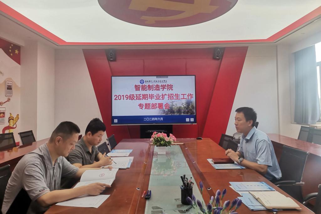 7月12日上午,智能制造学院在10-305召开2019级延期毕业扩招生专项工作会,副院长张晨亮,机电、机制和质检等专业扩招教学负责人参加。