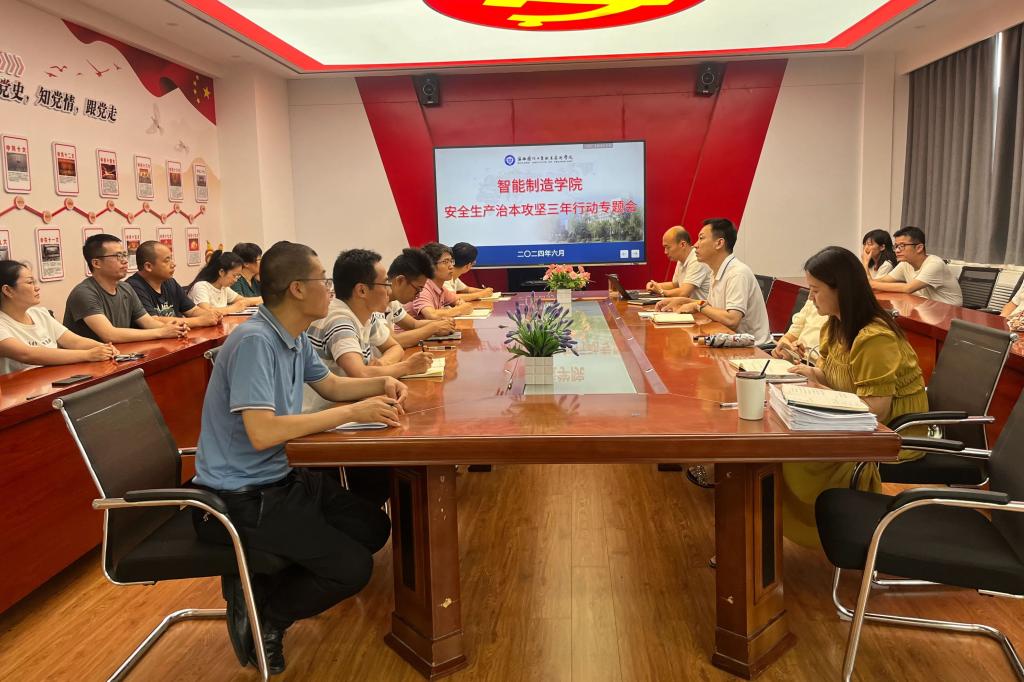 为进一步夯实安全生产基础,6月20日智能制造学院召开安全生产治本攻坚三年行动专题会,智能制造学院副书记兼副院长沈博、各教研室主任、科级干部、全体辅导员和实验员等主要岗位人员参与。会议由智能制造学院副院长张晨亮主持。