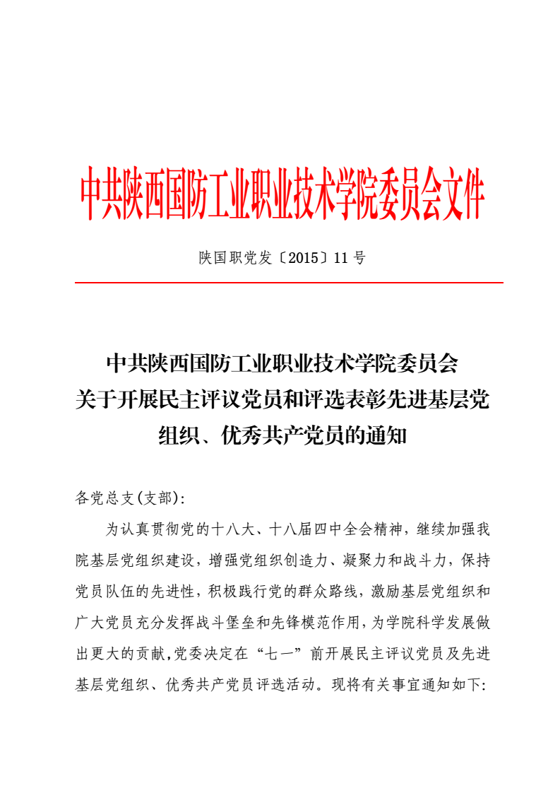 关于开展民主评议党员和评选表彰先进基层党 组织、优秀共产党员的通知