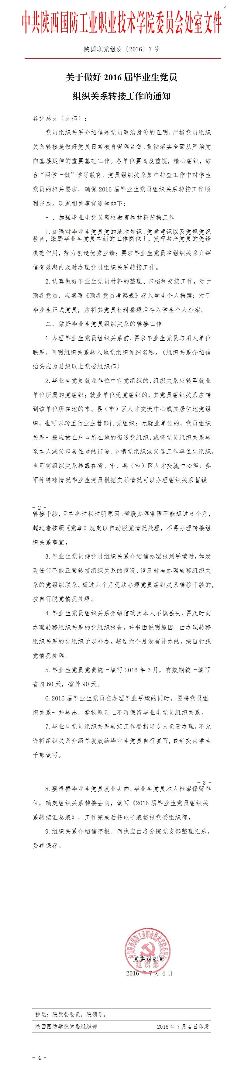 关于做好2016届毕业生党员组织关系转接工作的通知