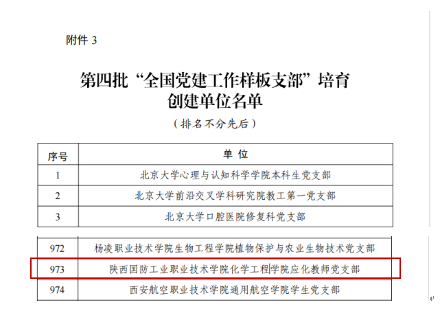近日,教育部办公厅公布了第四批全国党建工作示范高校、标杆院系、样板支部培育创建单位名单,我校化学工程学院应化教师党支部入选第四批“全国党建工作样板支部”培育创建单位,这是我校基层党支部入选的第四个“全国党建工作样板支部”。