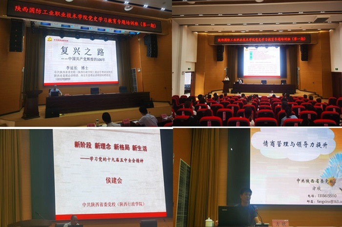培训会上,陕西省委党校李延长教授作了题为《复兴之路——中国共产党辉煌的100年》的主题报告,省委党校方欣教授作了题为《情商管理与领导力提升》的主题报告,省委党校侯建会教授作了题为《十九届五中全会精神和习近平总书记在庆祝中国共产党成立100周年大会上的重要讲话精神解读》的主题报告,咸阳市委党校穆娟教授作了题为《马栏革命斗争史及其现实启示》的主题报告,省委党校闫朦教授作了题为《基层党组织建设和党务工作》的主题报告。5位专家的授课视野开阔、内容丰富、深入浅出、精辟透彻,思想性、理论性、实践性、指导性强,对大家学习领会习近平新时代中国特色社会主义思想和“七一”庆祝大会上的重要讲话精神,进一步统一思想、凝聚共识,提升领导干部的管理水平、增强党支部书记党务工作能力具有重要作用。